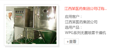 近年來我公司在食品、調(diào)味品、中藥、生物制品、化工和融溶造粒等行業(yè)中發(fā)展較快、根據(jù)生物的熱敏性、吸濕性、易結(jié)塊、易粘壁的特點(diǎn),進(jìn)行特殊設(shè)計(jì),取得了較高的知名度。公司常年備有各類試驗(yàn)樣機(jī)供客戶來人帶料進(jìn)行工藝試驗(yàn)。
