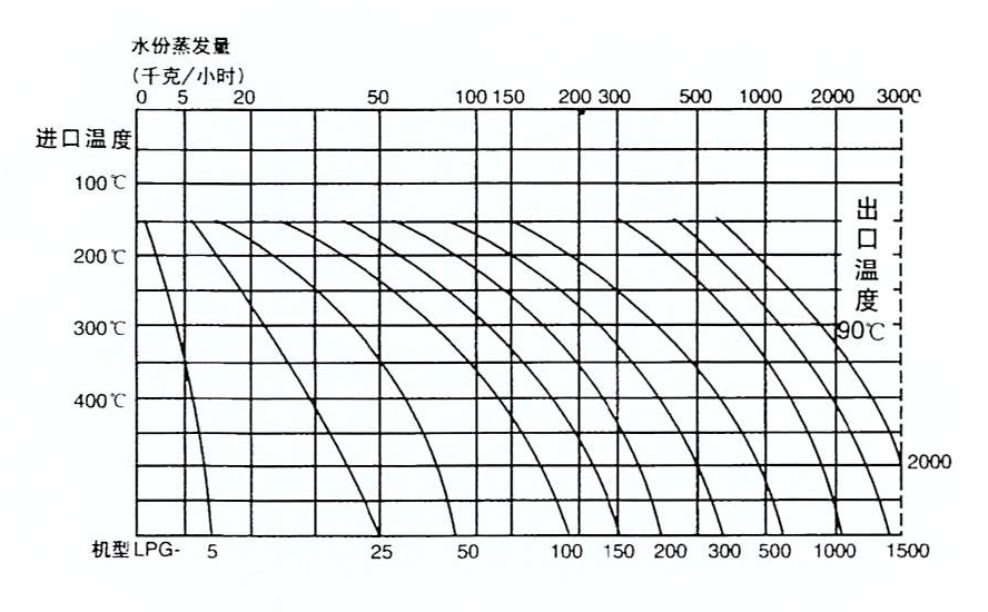 注:水份蒸發量與物料的特性,含熱量及熱風進出口溫度有關