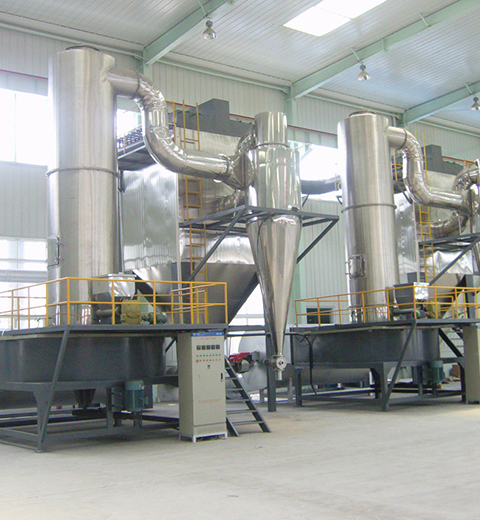 熱空氣由入口管以適宜的噴動速度從干燥機底部進入攪拌粉碎干燥室,對物料產(chǎn)生強烈的剪切、吹浮、旋轉(zhuǎn)作...